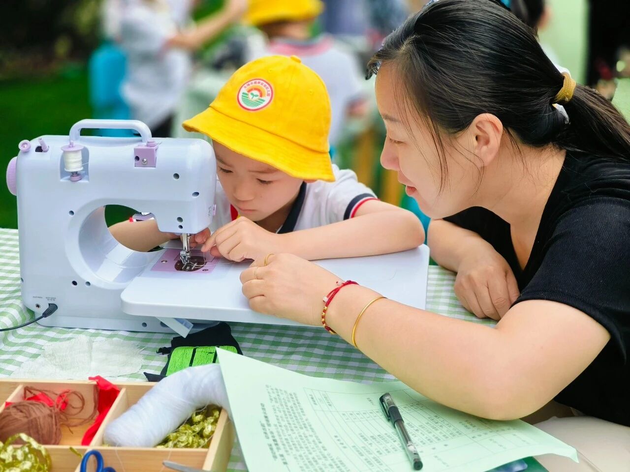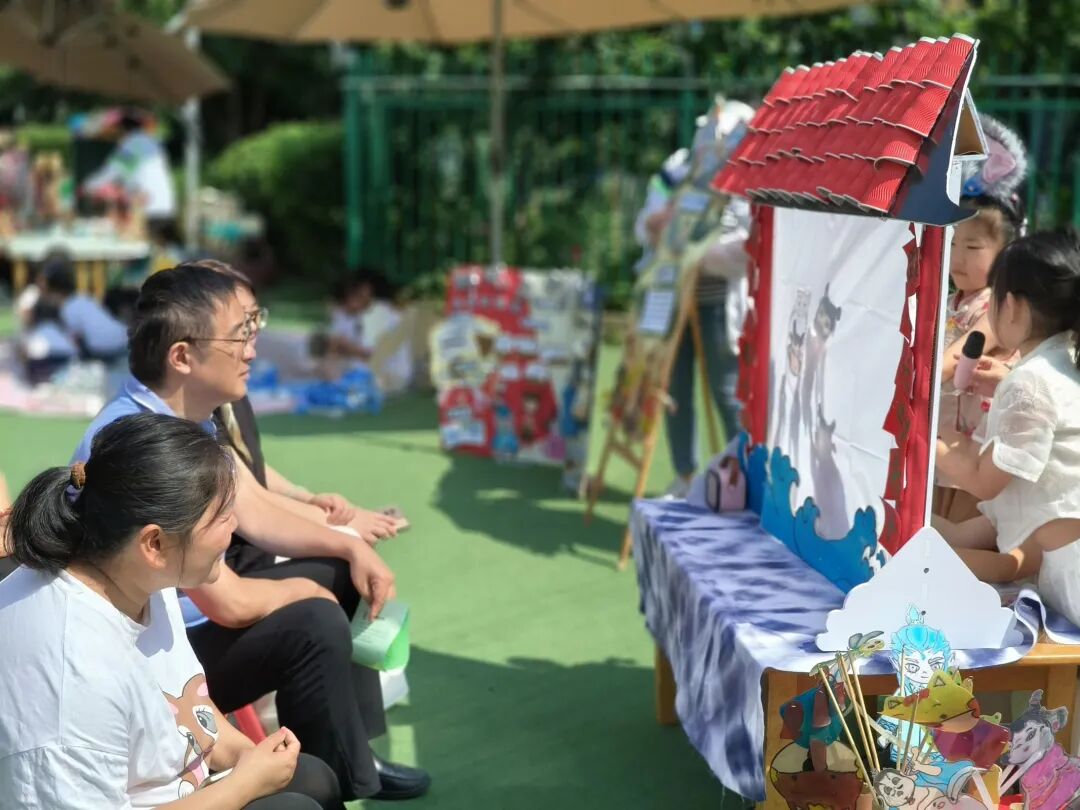 创客教育以其“创造、合作、动手、创意、分享”的核心特征,为幼儿园教育注入了新的活力。2025年5月28日无锡市盛岸实验幼儿园开展了一场“萌动神采,幼承古韵”为主题的户外创客游戏展示活动,此活动以《哪吒之魔童闹海》为载体,将传统文化资源与儿童多元发展需求相结合,引导幼儿在“自然· 生活· 亲历·生长”的环境中,通过创客游戏体验,用自己的方式构建共享、共融、共通的学习共同体,进一步增强文化自信与民族自豪感。无锡市教科院黄树生博士,东方娃幼教集团总园长朱雷、正校级领导薛景女士及集团内各业务园长、教师代表,盛岸实验幼儿园家长代表参与了本次活动。