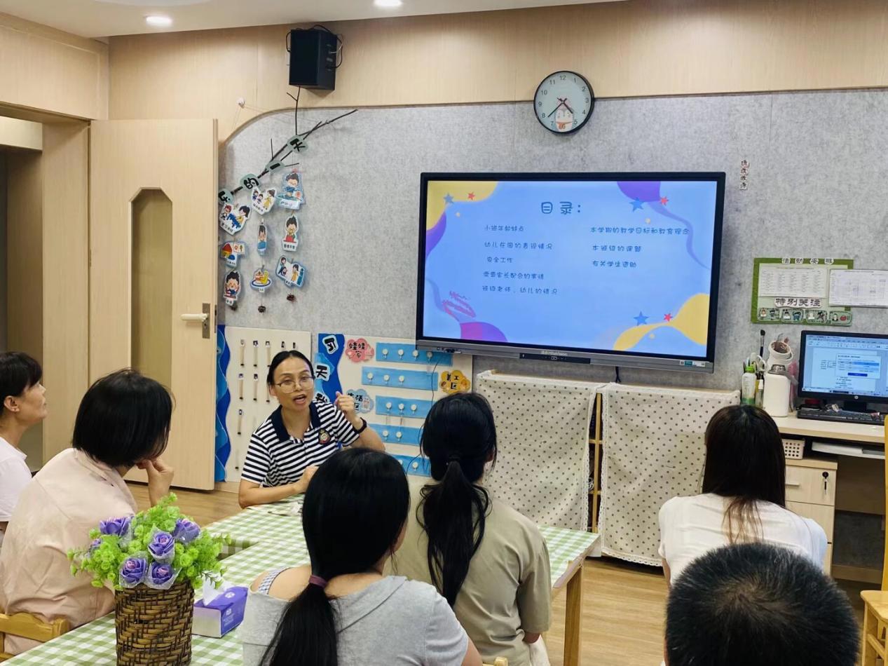 中班是孩子各方面能力提升的关键期,老师们以幼儿发展情况小结入手,逐一向家长介绍如何培养幼儿的生活习惯、自主意识和规则意识,如何进行有效陪伴,并营造良好的活动和生活环境,帮助幼儿建立规则意识,达成“共建共育”。