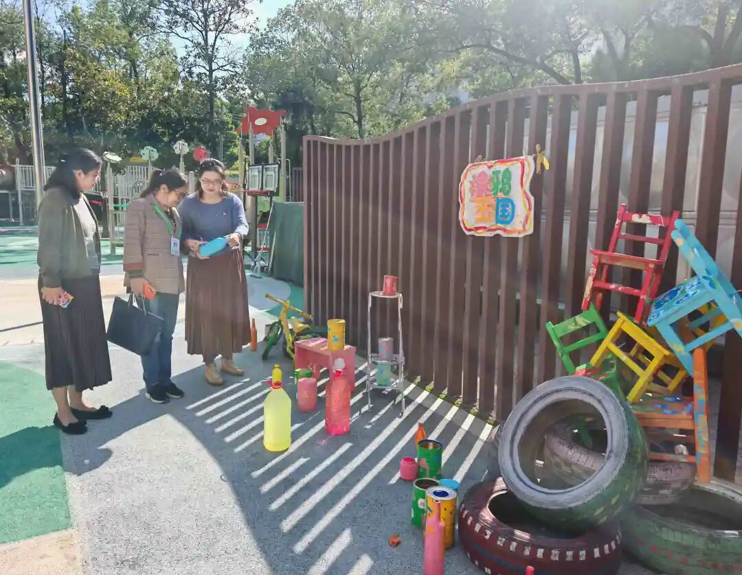 随后,王佶芸督学以“游戏伙伴”融入幼儿活动中,她与幼儿亲切互动,询问游戏内容,耐心倾听幼儿的分享,互动中满是暖意。依托自然资源,小班幼儿来到户外场域开展花园音乐会,在自然中享受美好。王佶芸督学充分肯定幼儿园“玩创”课程实践扎实,将自然场域与课程游戏深度融合,让大自然成为孩子“玩中学、做中创”的乐园。