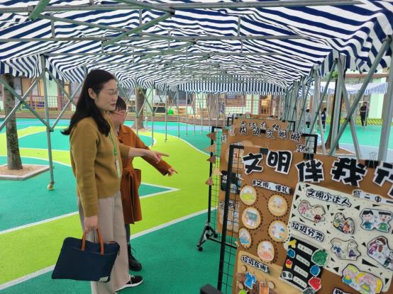 随后,督学巡视课堂,观摩了班级的游戏活动,并参与到幼儿游戏中,与幼儿游戏互动。在活动中,督学随机与幼儿交谈,了解了班级教师平时的工作情况。督学与部分教师进行了座谈,就学校开展师德师风建设活动了解情况,听取教师们的建议,并对学校的师德师风工作加以了肯定。